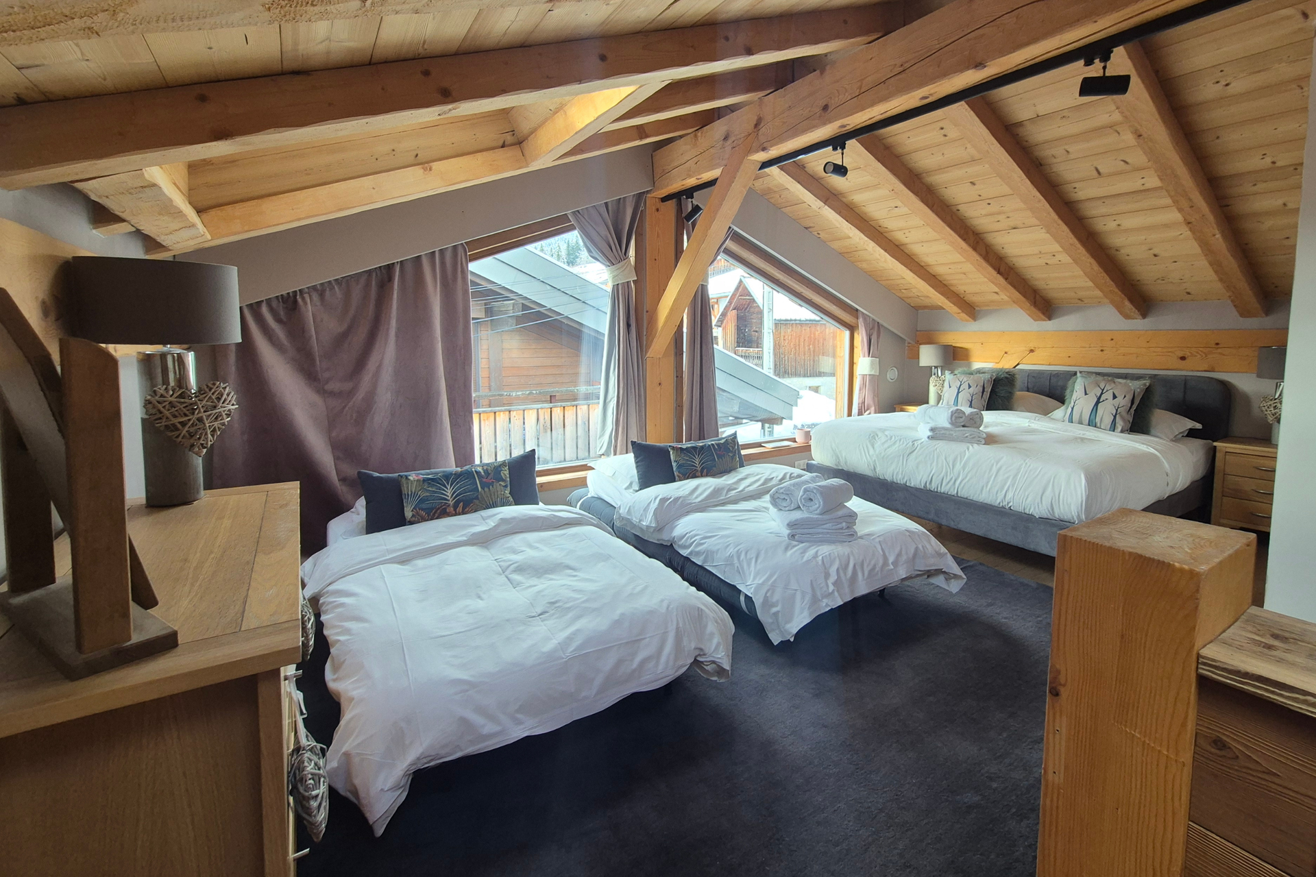 Le Chalet Abeille a été construit en 1850 et récemment rénové, à seulement quelques minutes des Gets. Il propose 4 chambres spacieuses et 3,5 salles de bains et peut accueillir confortablement 12 personnes. Il y a une cuisine, une salle à manger, un salon spacieux avec feu de bois et un balcon encastré avec vue sur Les Gets. À l'extérieur, il y a un jacuzzi pour 6 à 8 personnes ainsi qu'un parking hors route avec borne de recharge pour véhicules électriques gratuite. Le ski-bus gratuit s'arrête devant le chalet et circule toutes les 30 minutes à partir de 8h.