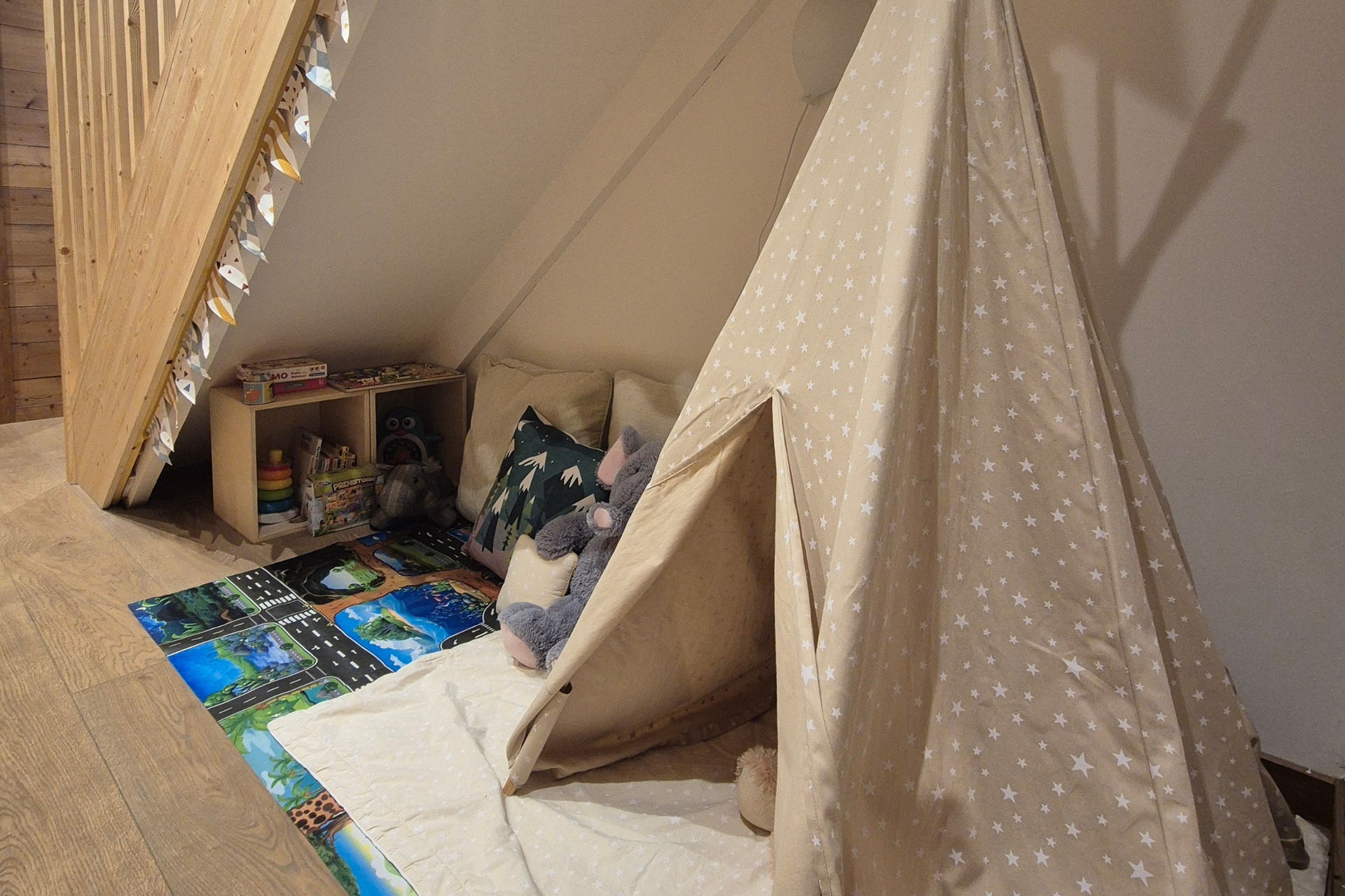 TV SnugSitué au bout de la salle à manger, le coin télé est parfait pour les enfants qui veulent regarder les derniers dessins animés ;-)